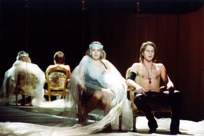 So it is that Ms TN has been thinking about Barrie Kosky's Poppea for more than a week, yet has been curiously unable to write a word. Last Saturday I stole a precious 24 hours, flew up to Sydney, relaxed enough to realise how near to burnout I actually am, and then trotted off to the Sydney Opera House to see the opera. From the overture, during which the lights slowly faded in the auditorium and the curtain rose, revealing Amor with her back to us, one garishly braceleted hand gracefully extended in silhouette, my breath seemed to stop. I left the theatre exhilarated, moved and shaken.